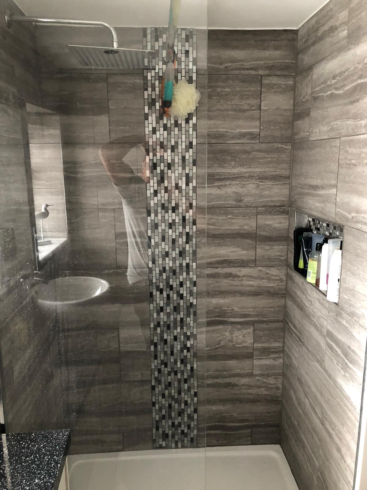 We installed a new bathroom at this home in Rainham, including a new suite, feature tiling, built in cabinets and a walk in shower.